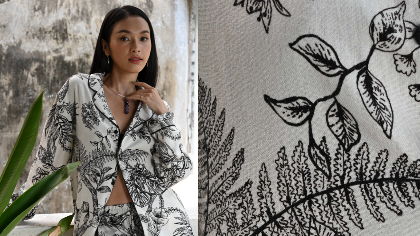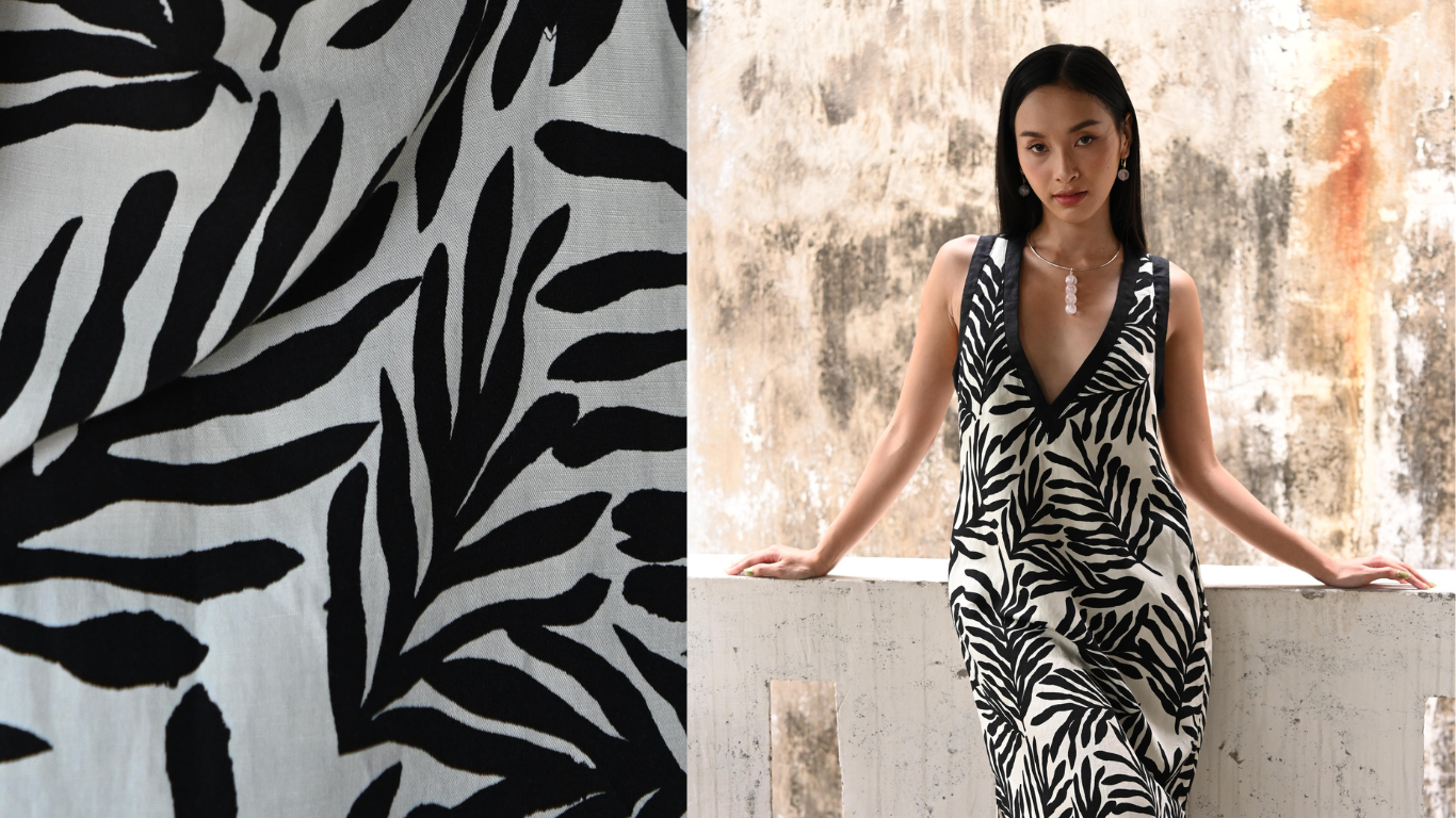 Noir Leaf Echo Linen Maxi Dress