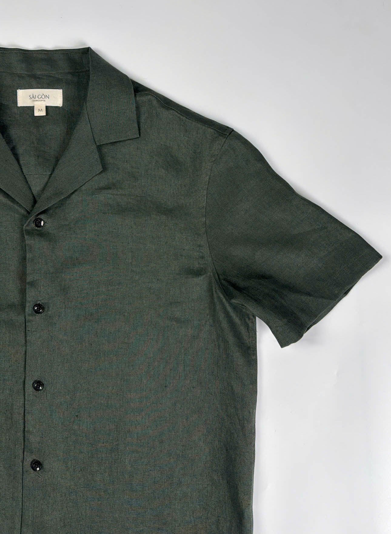 Our Deep Army Green Hawaiian Shirt isn't your typical tourist-shop aloha shirt. Made from 100% quality linen, this is resort wear with substance. The kind of shirt that works for destination weddings to special occasions where you want to acknowledge the event with sophistication and elegance.