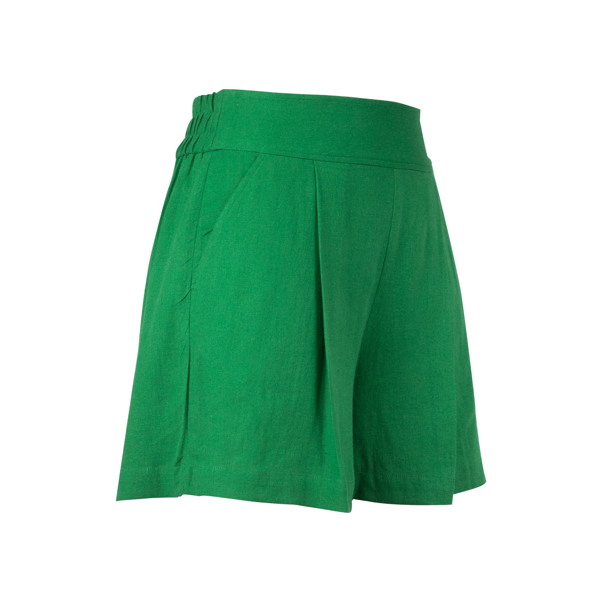 Shorts - Green Wide Leg | 100% Linen | Elastic Back Waist